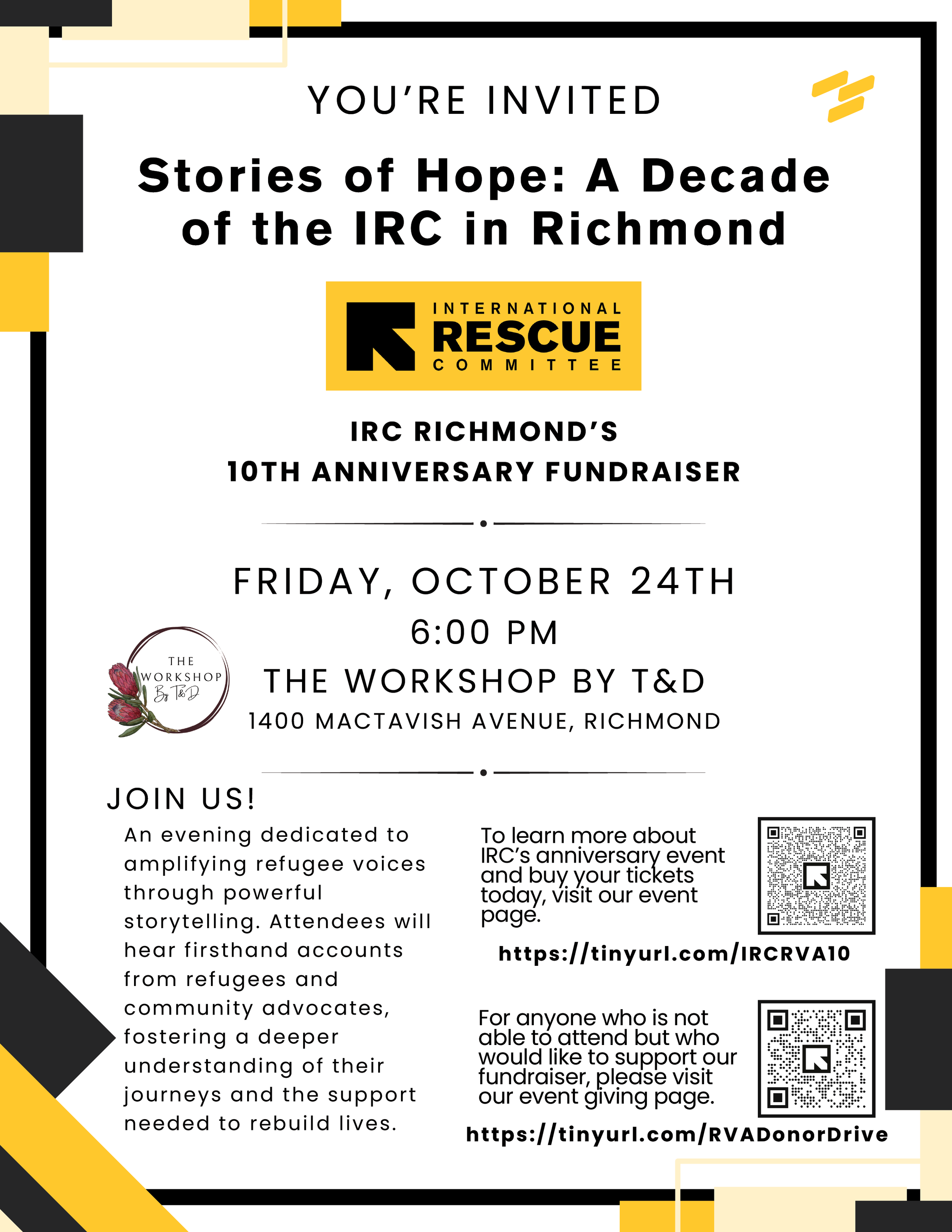Celebrate the International Rescue Committee’s 10 Year Anniversary in Richmond.